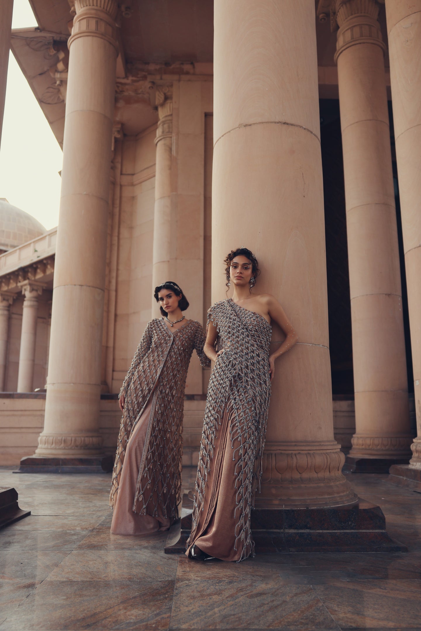 Silviana Peach Gold Prism Gown