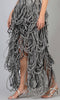 The Reine gown features a braided structure and a high-low silhouette. This piece is all about sophisticated drama and feminine detailing. Temper the look to your BFFs cocktail reception with high-heels and sleek hair.
