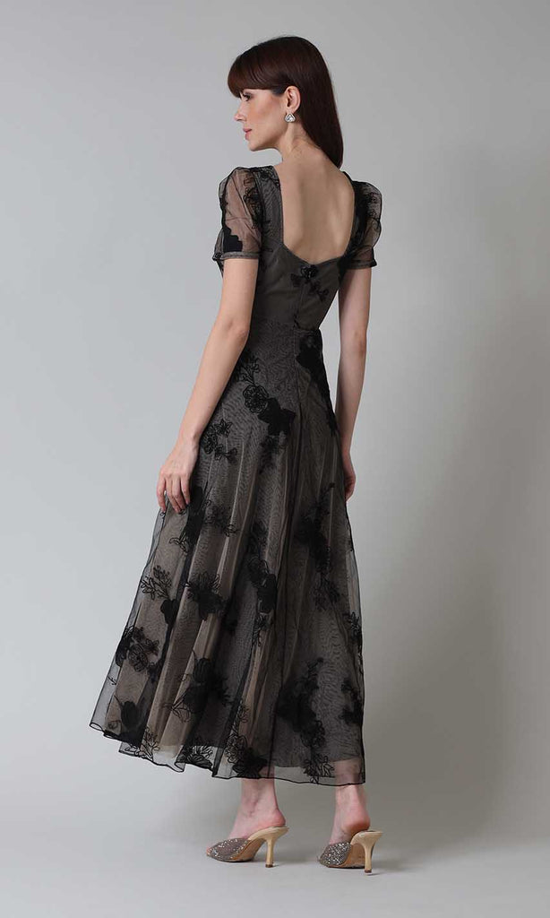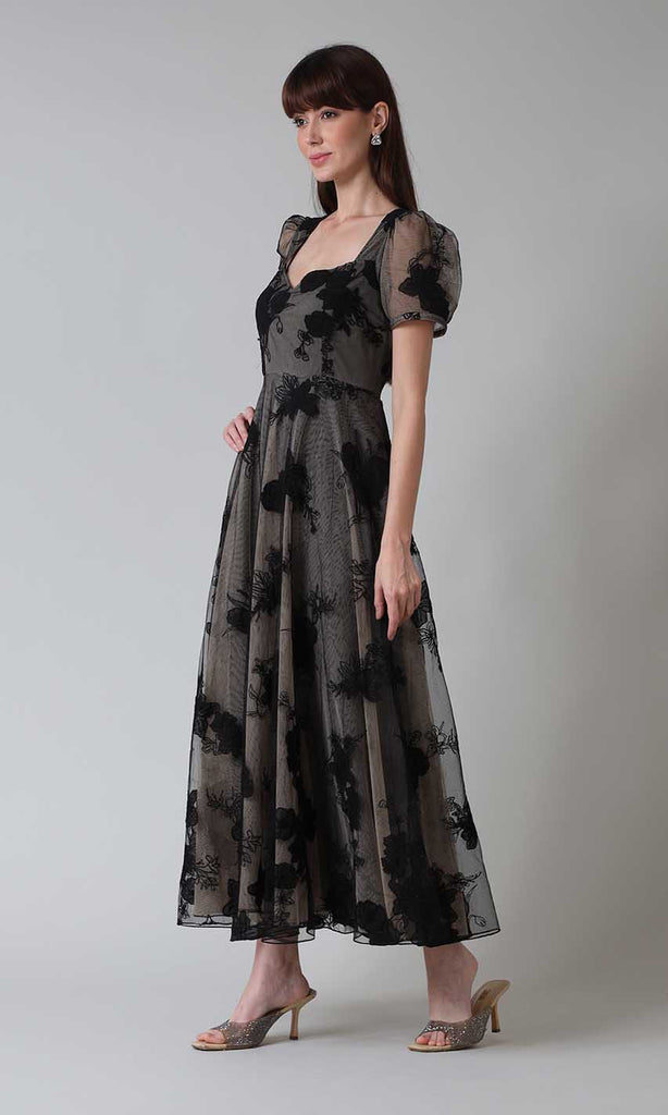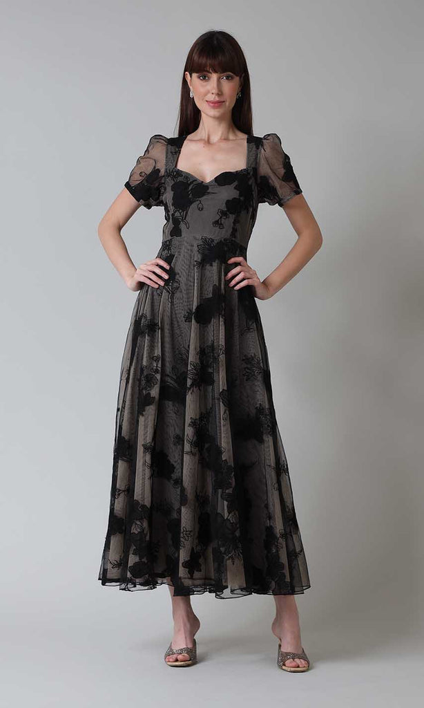 The 'Anne' dress is the perfect date night outfit, featuring a sweetheart neckline and floral embroidery details. Style it with high heel sandals and a clutch bag for the perfect date night look.