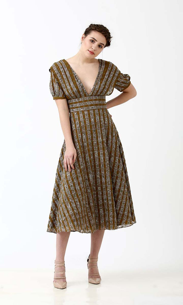Floral Stripes Midi Dress – Geisha Designs by Paras and Shalini