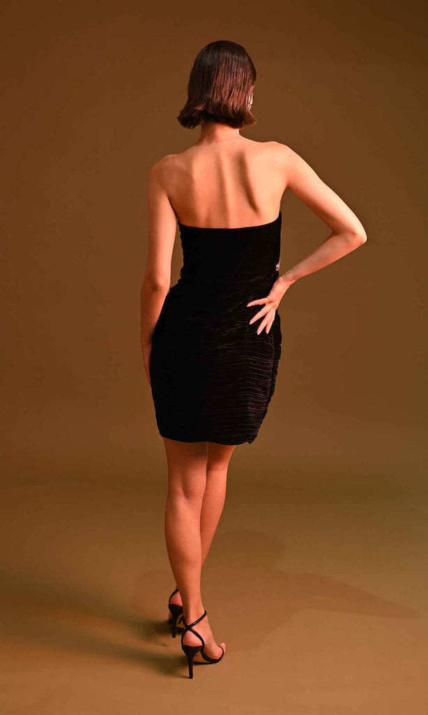 Our 'Stardust' Dress crafted from luxurious velvet,  exudes a regal aura that's impossible to ignore. Intricate handwork graces the waist area, adding a touch of exquisite elegance that sets it apart. The playful silhouette radiates flirty vibes, perfect for a romantic dinner date or a vibrant party.