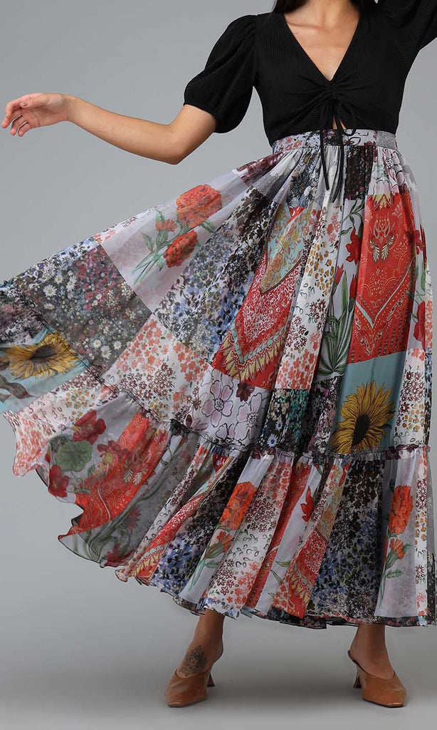 Micaela Patchwork Print Skirt – Geisha Designs by Paras and Shalini