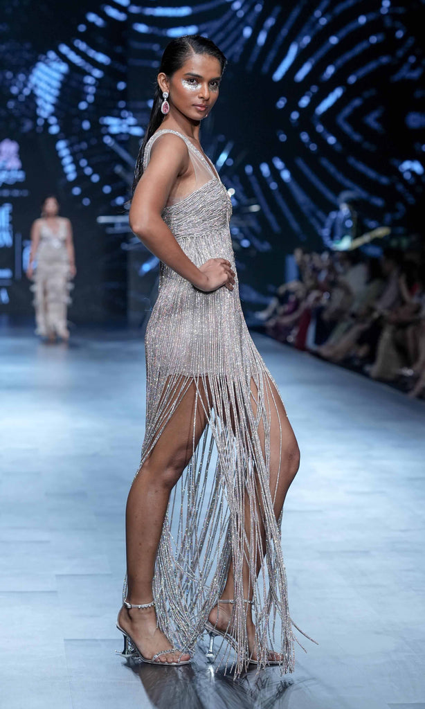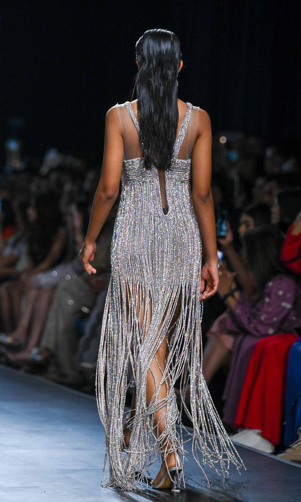 Home / Collections / Gowns / Arietta Silver Tasseled Dress