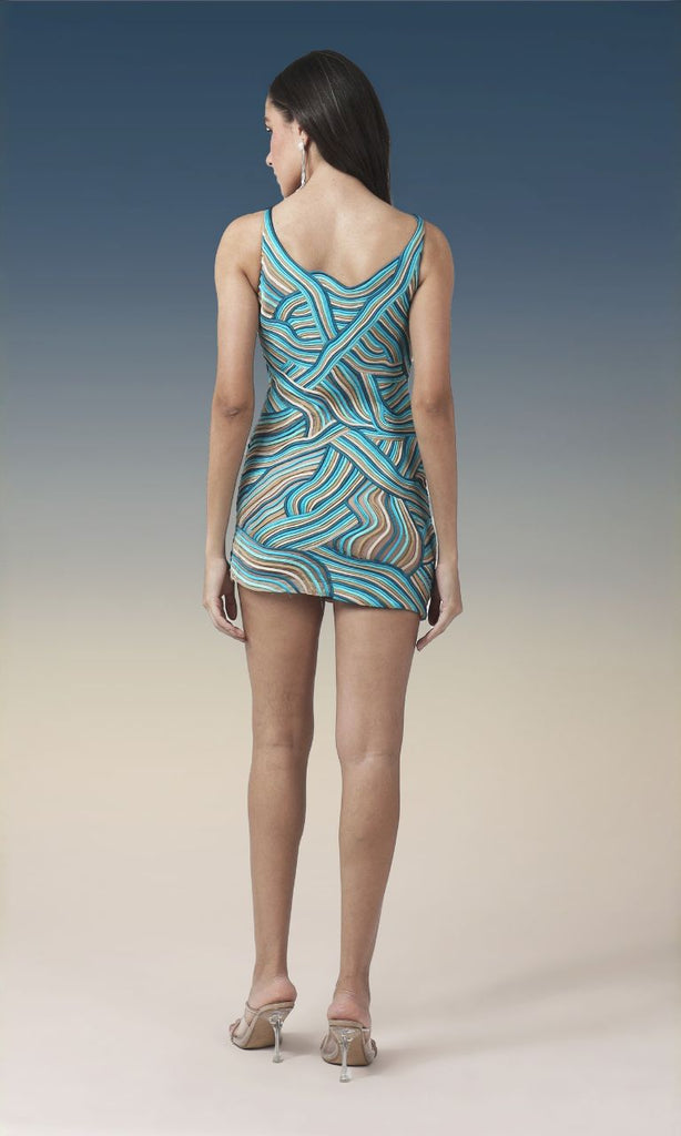 Aqua Serpentine Bodycon Mini Dress – Geisha Designs by Paras and Shalini