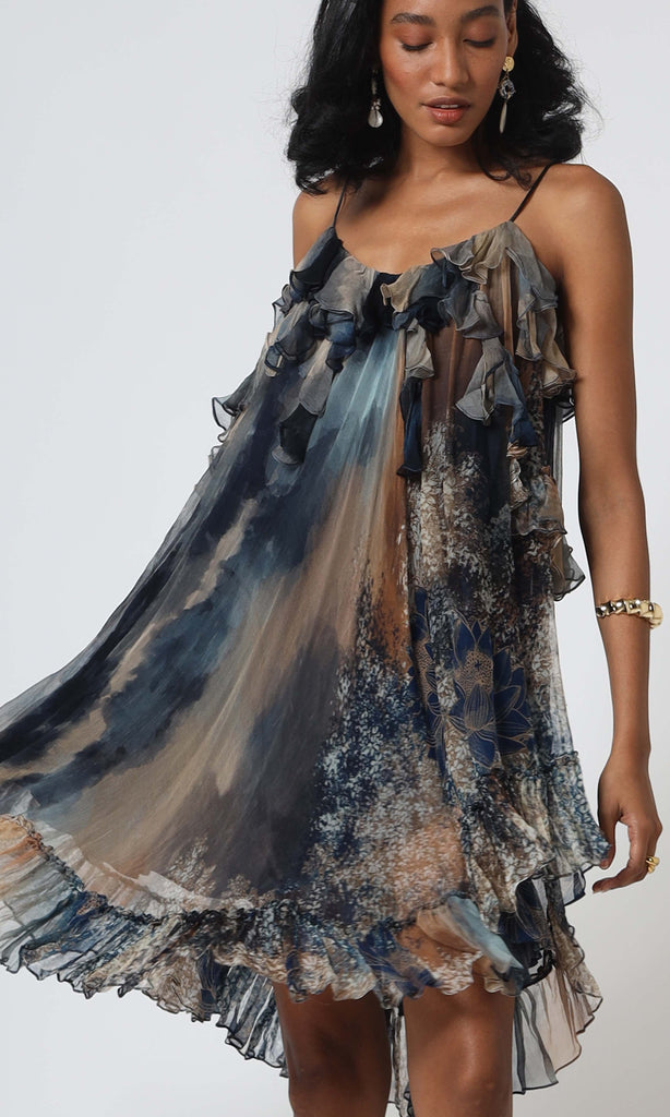 For that event where you need to stand out in the most sophisticated way while also being the life of the party, this dress is your perfect match. Its billowing sleeves, flowing silhouette, high neckline & the rich midnight floral print keeps it undeniably elegant & playful. Pair with sleek heels and bold accessories, ensuring all eyes are on you.
