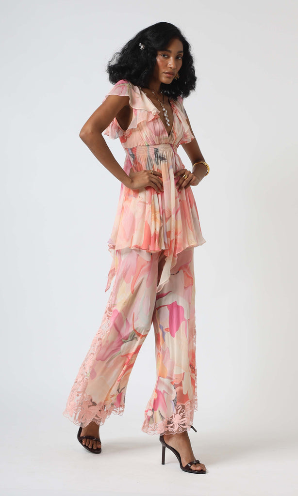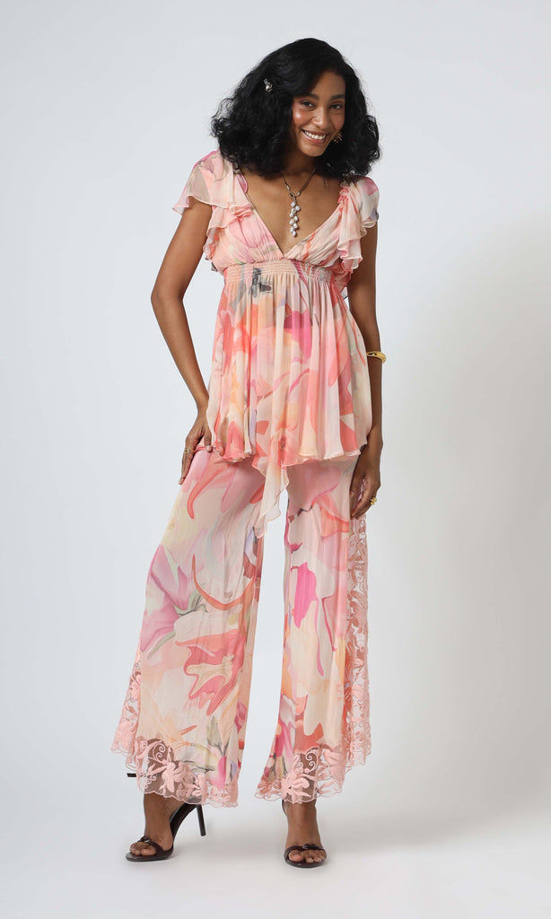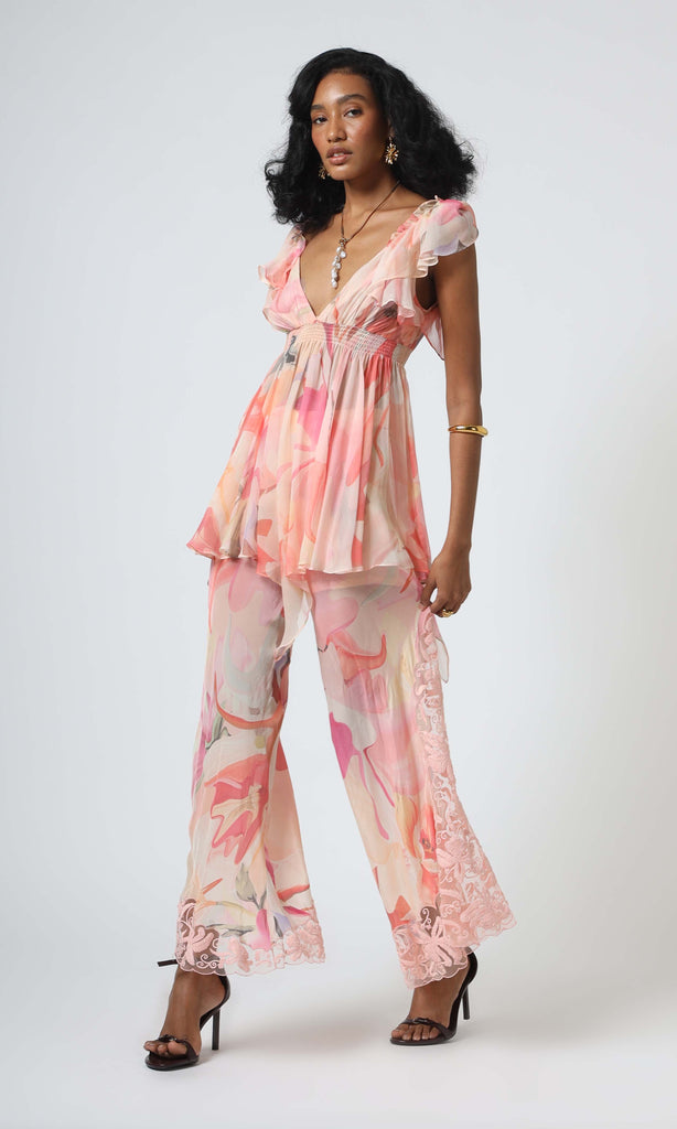 Wanna float through life with ease? Our 'Cyra top and pants set, is designed for just that. Made from a delicate, lightweight fabric, this floral ensemble flows beautifully with every step, evoking a sense of freedom. Step out for a stroll on the beach, or a causal brunch. Pair it with strappy sandals and dainty jewelry for a look that feels as effortless as a summer breeze.