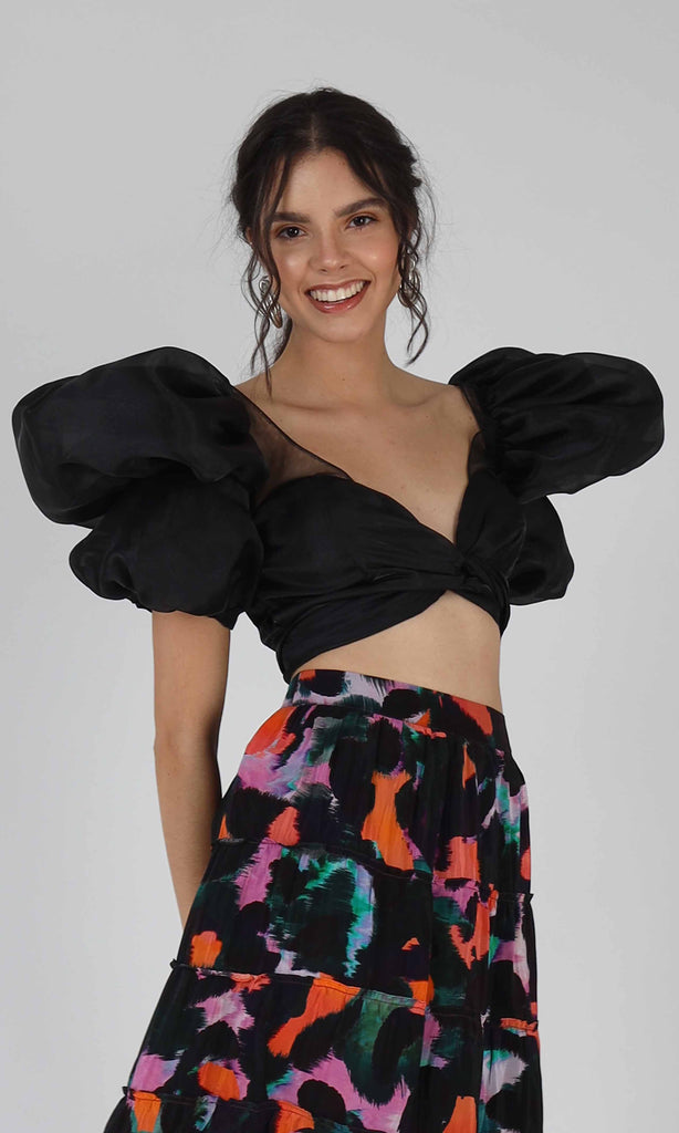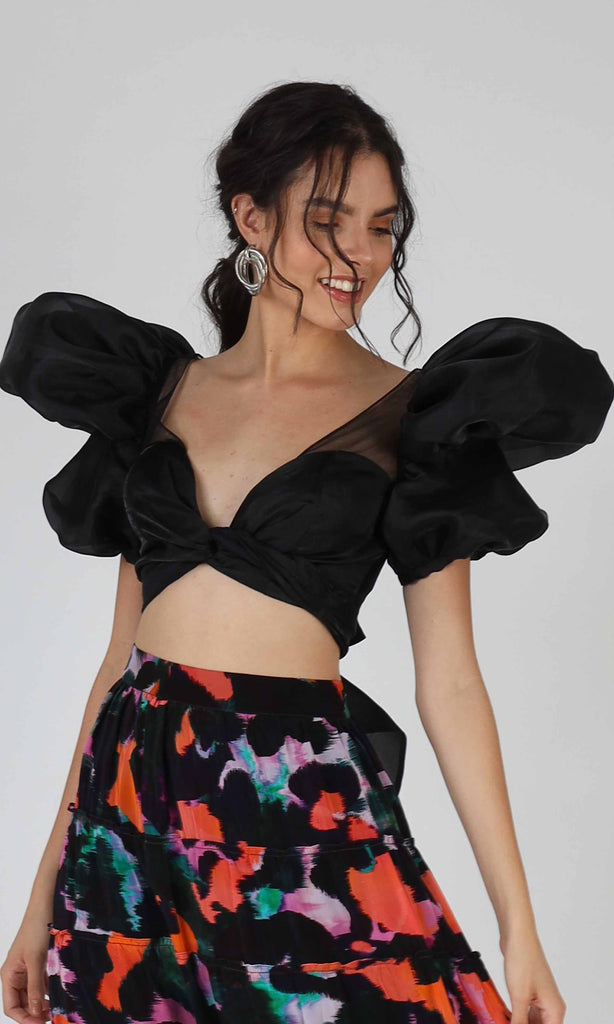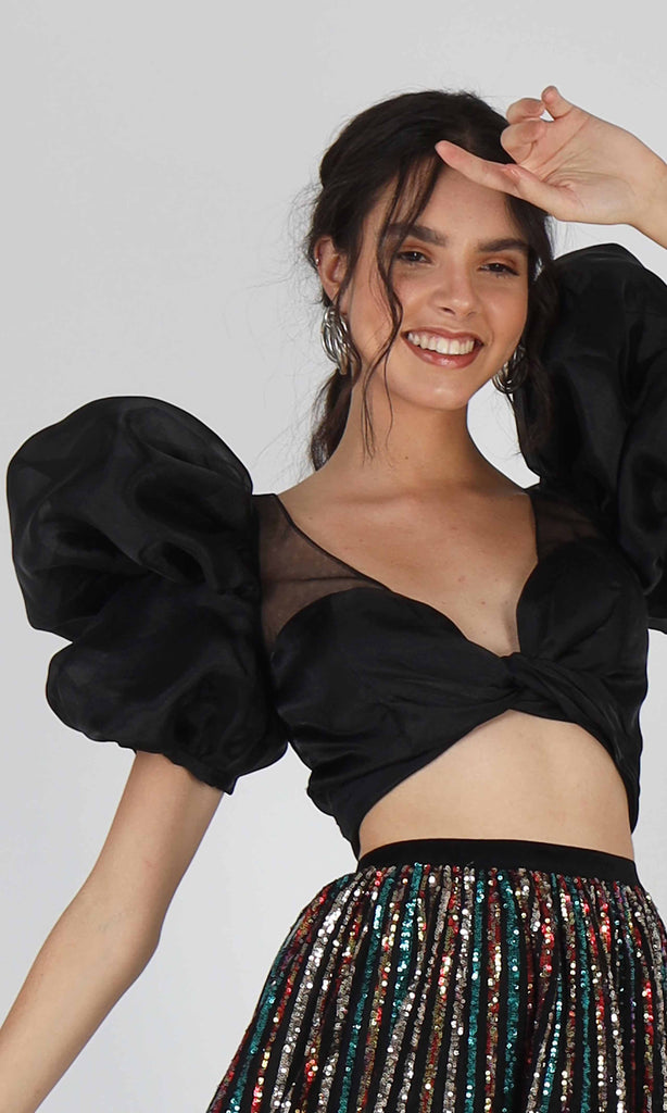 Statement tops are going to be all the rage this party season. Our 'Dayna' top is the perfect statement piece that you'll need this season, it is a tie-up top that can be styled in like a hundred different ways, thus making it a versatile piece. Pair it with our 'Gloria' metallic skirt for the perfect party look.