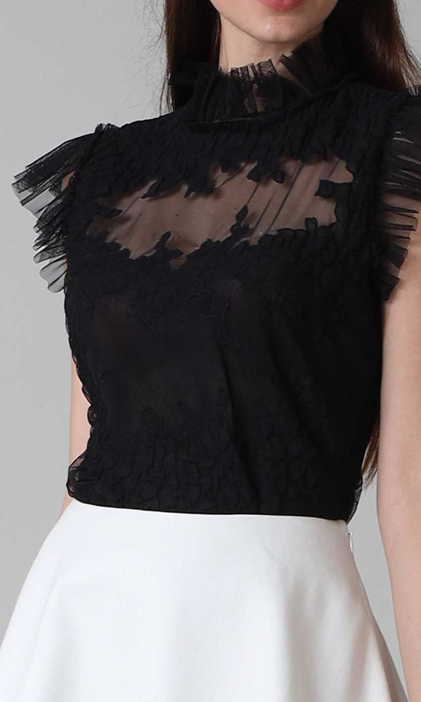 The 'Cyndi' top is a dressy tulle top, just perfect for an office party or even a night out with your girls. Style it with dressy pants for a polished after-hours look, or a skirt and high heels for a night out.