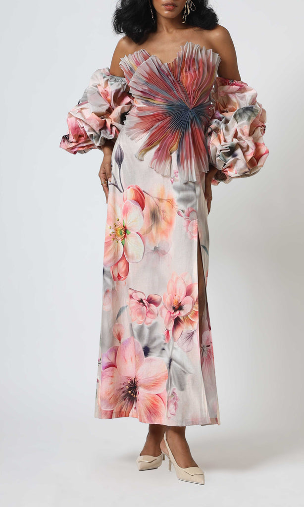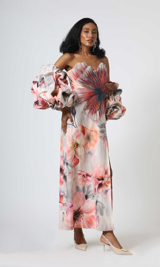 Step into the spotlight with this statement-making gown, designed to turn heads & command attention. Perfect for grand entrances at evening galas or upscale events, The 'Lilian dress' is a celebration of elegance with a dramatic twist. Style it with minimalist accessories to let the dress do all the talking.