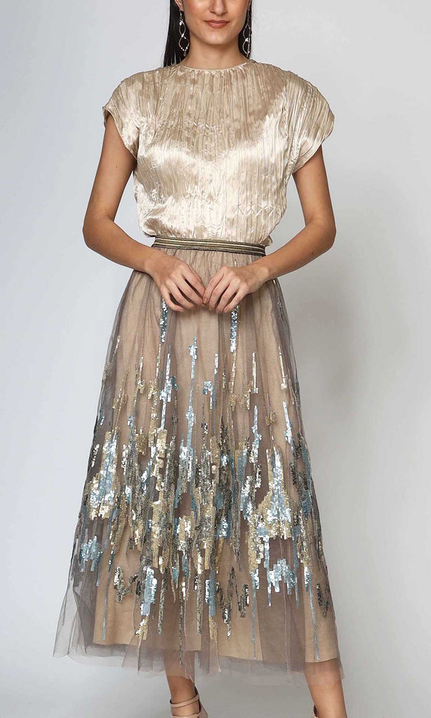 Home / Collections / Geisha Resort / Sequin Embroidered Beige Skirt