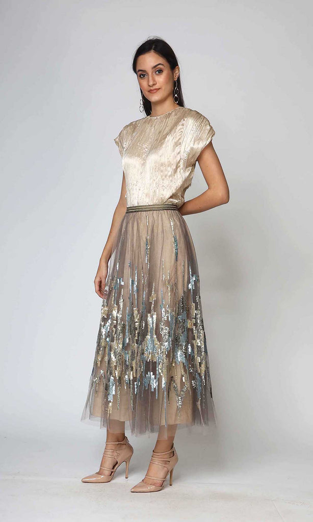 Sequin Embroidered Beige Skirt – Geisha Designs by Paras and Shalini