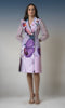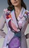 Make a modern statement in this lilac trench-style dress featuring a bold, hand-painted botanical print.The sophisticated wrap design is anchored by a structured collar and elegant long sleeves.A cinched tie-waist creates a flattering, feminine silhouette that defines your shape beautifully.Crafted with high-contrast floral motifs, this piece transitions seamlessly from gallery openings to garden parties.
